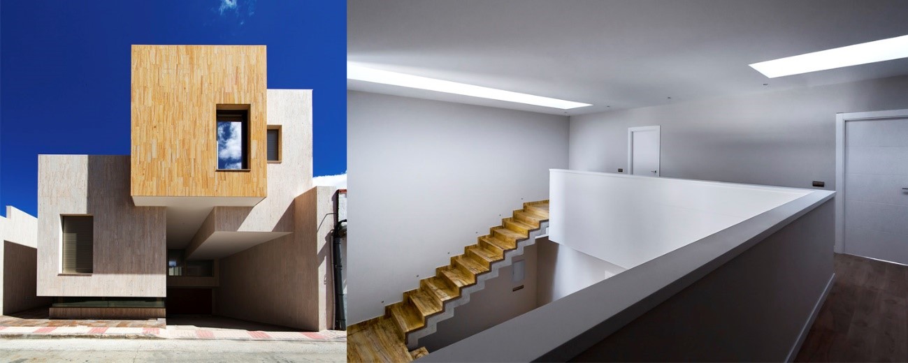 Te recomendamos que le eches un vistazo a la Casa R+ que se trata de un proyecto de vivienda unifamiliar que está situado en la localidad manchega de Mora. Tiene como elemento protagonista la piedra, que realza la presencia orgánica de sus volúmenes, como si fuese un gran mineral cristalizado en una estrecha calle del pueblo. La parte trasera de la casa tiene un patio interior que predispone a la calma y la paz.