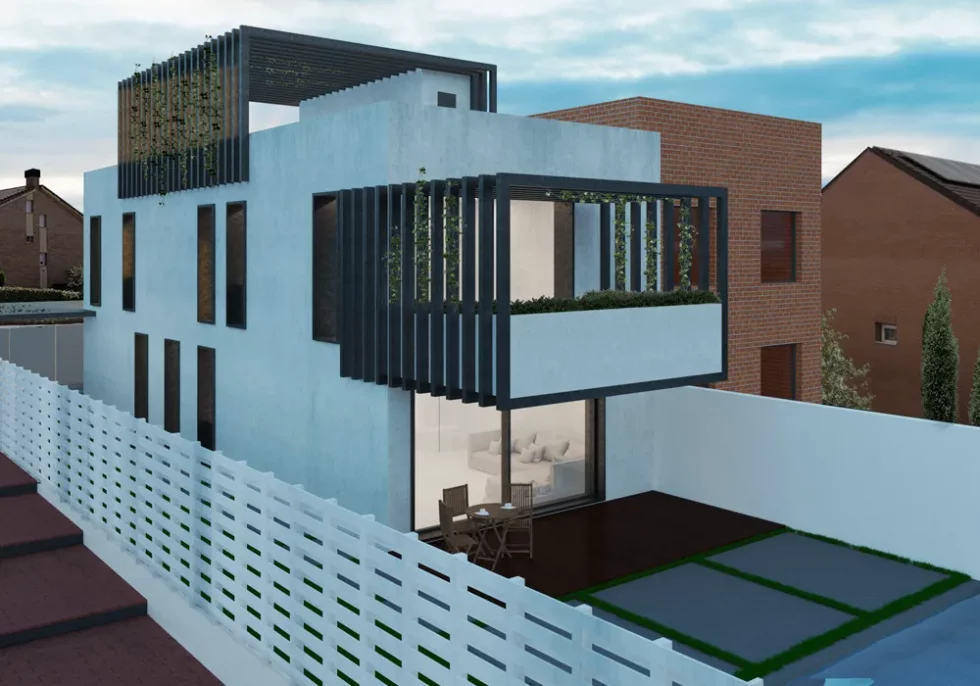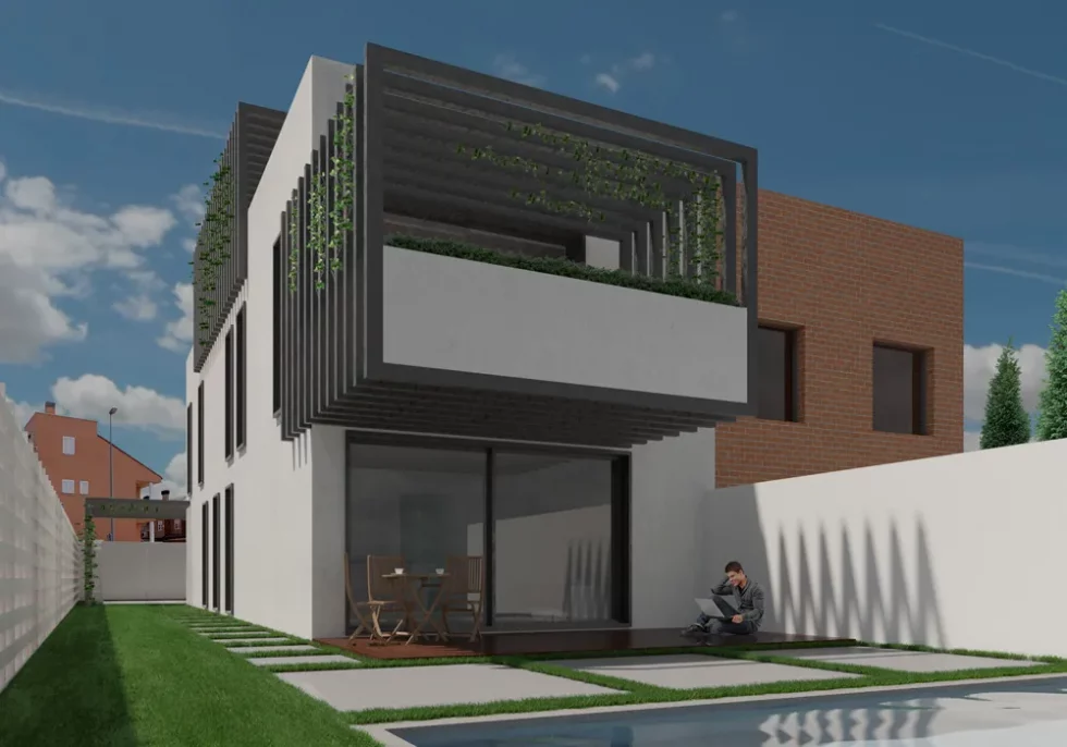 It is in this very uncertain context that Casa Chequia was conceived. A single-family home located in a row of plots in Valdemoro, Madrid. A rectangular plot, completely flat, with very attractive views of a large park in the back thanks to a significant jump in the orography of the place.