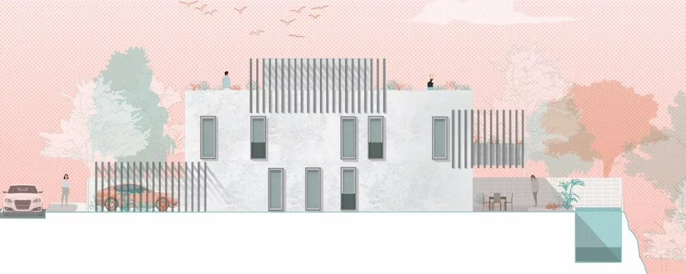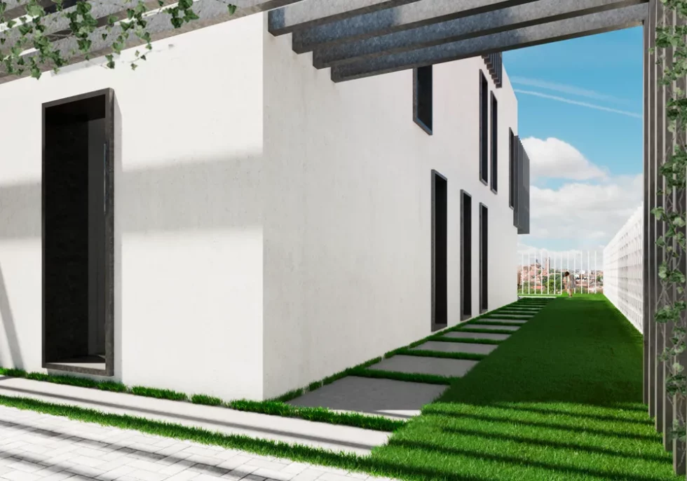 Its rectangular floor plan brings together a comfortable distribution for the day-to-day life of the family that will live in it, without ever giving up the dignity and elegance of its urban presence, thanks to the careful composition of rectangular windows placed on its three façades.