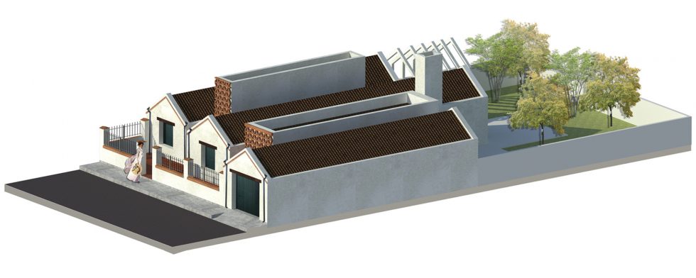 The windows were marked with wooden lintels, traditional wrought ironwork and carpentry and green carriage shutters, etc. were used. all elements of the collective imaginary about the rural world, without necessarily being elements used in the traditional architecture of the area.