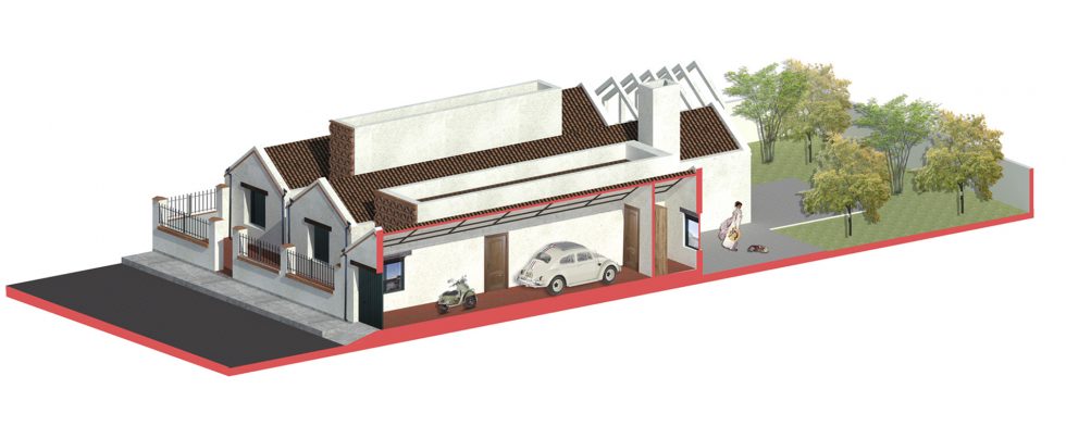 It seemed to us a lack of respect towards the context to play with too modern languages in this house, so we decided, without complexes, to use rustic elements from the local collective imagination in our project. In this way, we get a country house with a rural aspect, well integrated in its environment, but on the other hand it is not a usual house there, since in the background it is a completely different house to any other of those that are they usually build in the town both in plant and in volumetry and spatiality.