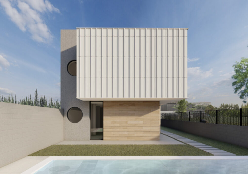 The sun in Madrid is very strong, especially during the summer months. The worst orientation here is west, as it receives intense heat during the long hours of summer afternoons. The west facade of this house has a very unique design. It is designed to prevent direct sunlight from hitting the windows, as its geometry is designed to cast its own shadows and protect the glass, thus preventing a “greenhouse effect” inside the home and reducing the energy consumption needed to heat it.