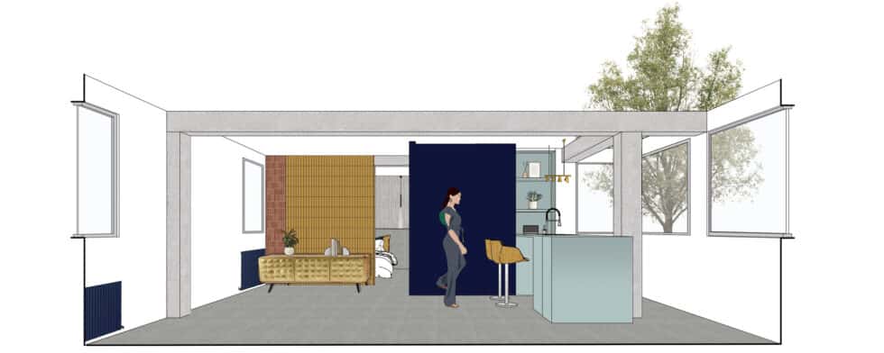 64 años después, con otros estándares de calidad espacial, reciclamos este apartamento demoliendo todo. Liberamos el espacio inundando la casa de luz natural, fomentando la ventilación cruzada, gracias a la estupenda oportunidad que ofrecen sus dos fachadas exteriores paralelas.