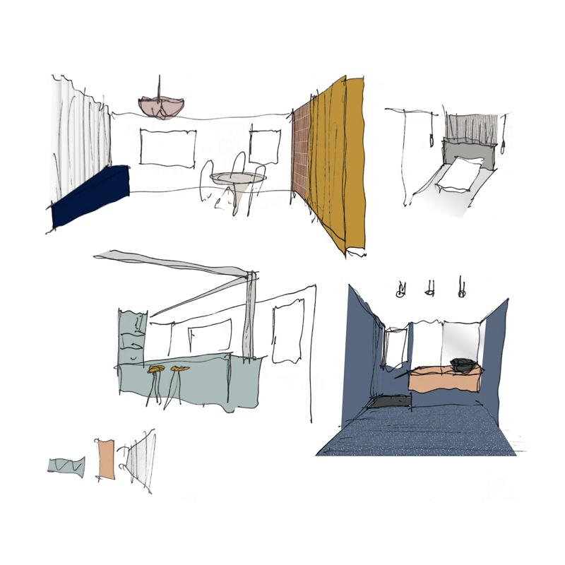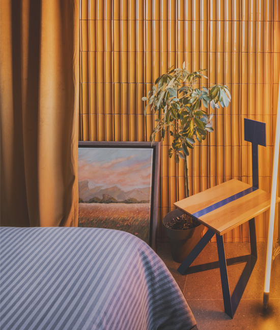 Cada pared se entiende como un lienzo en blanco donde poner un material determinado, que macera con el resto. Una pieza dentro de un todo, un pedazo de un collage tridimensional habitado en el que son importantes las texturas, los brillos, los matices y, sobre todo, como cada pieza se relaciona con las demás.