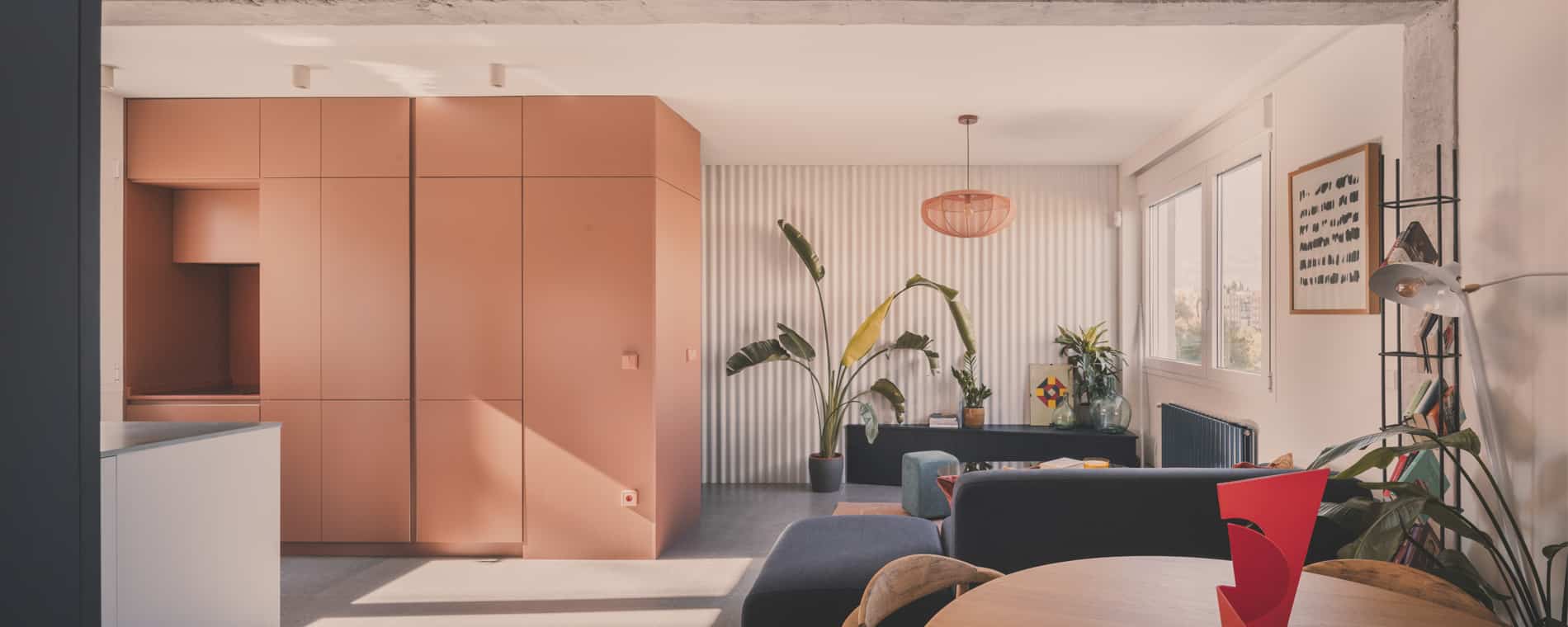 Un rico juego matérico, cromático y espacial que ha transformado completamente este apartamento 64 años después de su construcción. Una nueva oportunidad para esta casa que ha sabido adaptarse a un mundo diferente a una nueva familia, a otras vidas.