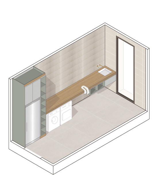 Los interiores se han trabajado para garantizar confort y facilidad en el uso diario. Materiales y detalles cálidos combinados con algunos toques más divertidos y frescos, se adaptan a la forma de ser de la pareja dueña de la casa. Cerámica y madera son los materiales protagonistas que se combinan de diferentes formas para dar personalidad propia a cada estancia, siempre diseñadas al detalle buscando soluciones especiales y a la vez útiles.