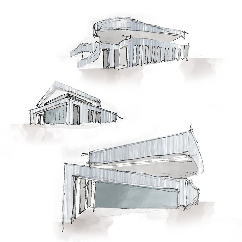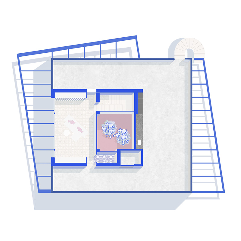 Con ellos la casa gana un frontis, una columnata, una escalera exterior escultural… Casa AZA se convierte de repente en un templo domestico descompuesto donde venerar la rutina diaria de una familia. Estos “fragmentos de templo” se recubren con una chapa mini onda blanca, recordando a las estrías del fuste de las columnas clásicas, haciendo que la casa vibre junto con el movimiento del sol.