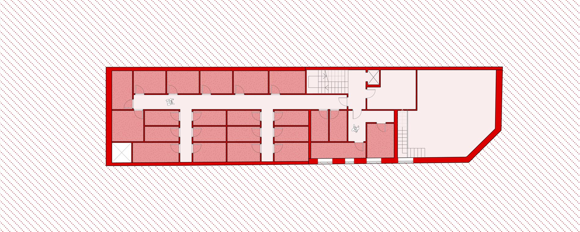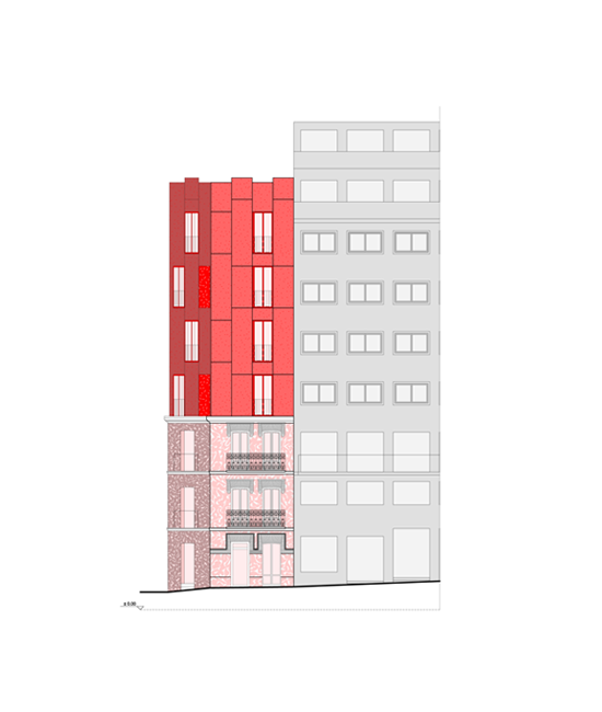 Conservando la fabulosa fachada neomudejar del pequeño edificio de Delicias 58, se propone hacer un vaciado completo de su interior, creando un sótano y 7 plantas sobre rasante. Dos patios colocados estratégicamente ayudan a configurar las plantas del nuevo edificio residencial, con 21 viviendas de 1 y 2 dormitorios, espacio comercial y zonas comunes de piscina, co-work, gimnasio, terrazas, y 21 trasteros asociados. Un edificio contemporáneo ideal para una vida urbanita situado en pleno corazón de Madrid, a tan solo 10 minutos andando de la estación de Atocha.